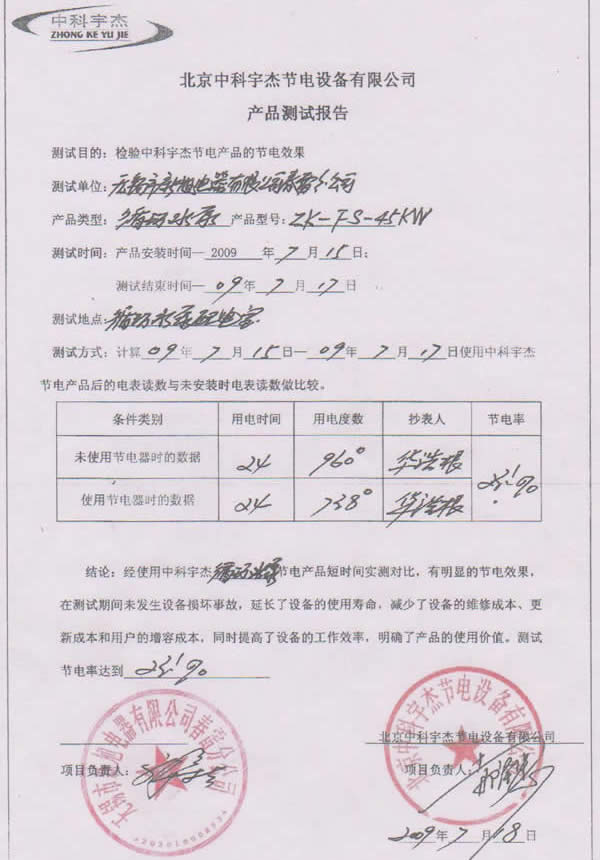 工程竣工后,中科宇杰工程人員對現(xiàn)場進行回訪,節(jié)電達到預期的23.1%,效果明顯。改造的水泵和節(jié)能設備至今運行平穩(wěn),節(jié)電效果持續(xù)有效。