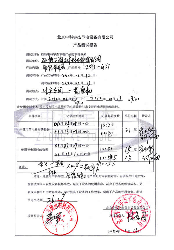 經過我們公司工程師的分析,有較大的節(jié)電空間,經測試安裝,幾臺設備的節(jié)電效果分別達到21.7%、25.9%、26.1%和40%。投資回報期1.5年。